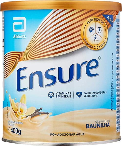 Para uma porção de 230ml, coloque 195ml de água fria em um copo. Adicione seis medidas rasas de Ensure Pó (colher medidora incluída dentro da lata) e misture até diluir completamente.